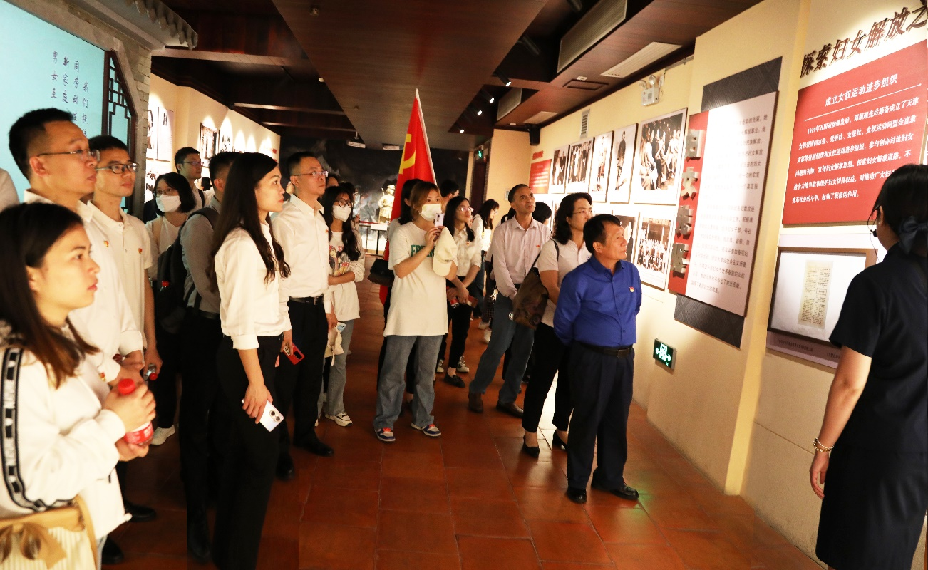 在讲解员的带领下,党员同志们依序进行参观学习。一楼序厅展示的是以邓颖超同志晚年形象为原型创作的全身塑像,塑像背景以大型浮雕组合画面,凸显邕江、古城墙、红棉树、南宁镇台府等南宁元素,寓意革命战士邓颖超是在南宁出生,是南宁的女儿。在参观六个主展厅过程中,党员同志们解到了邓颖超同志在南宁的童年生活、求学任教的经历、与丈夫周恩来半个多世纪的革命情缘,以及五四运动时期投身于革命事业,参加长征、抗日战争、解放战争的革命征程。来到“妇女先驱”展厅,党员同志们对邓颖超领导并参加各项妇女社会活动,为建设中国社会主义事业、增进中国妇女与世界各国妇女的友谊、推动世界和平作出突出贡献印象尤为深刻。在“公仆本色”与“情系广西”展厅党员同志们深受邓颖超在担任党和国家领导人时的廉政事迹以及她对出生地南宁的浓浓乡情所感染。