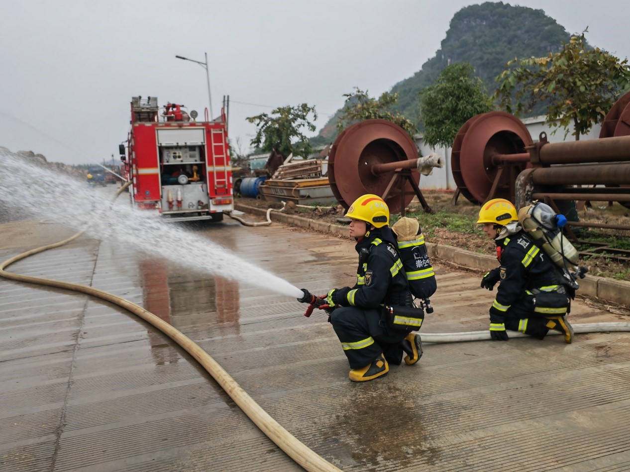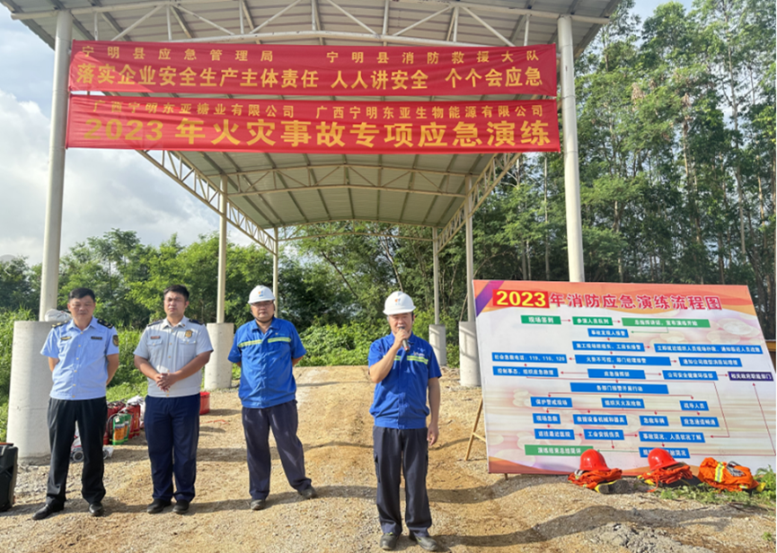 图为:2023年6月7日,广西宁明东亚糖业有限公司开展火灾事故专项应急演练